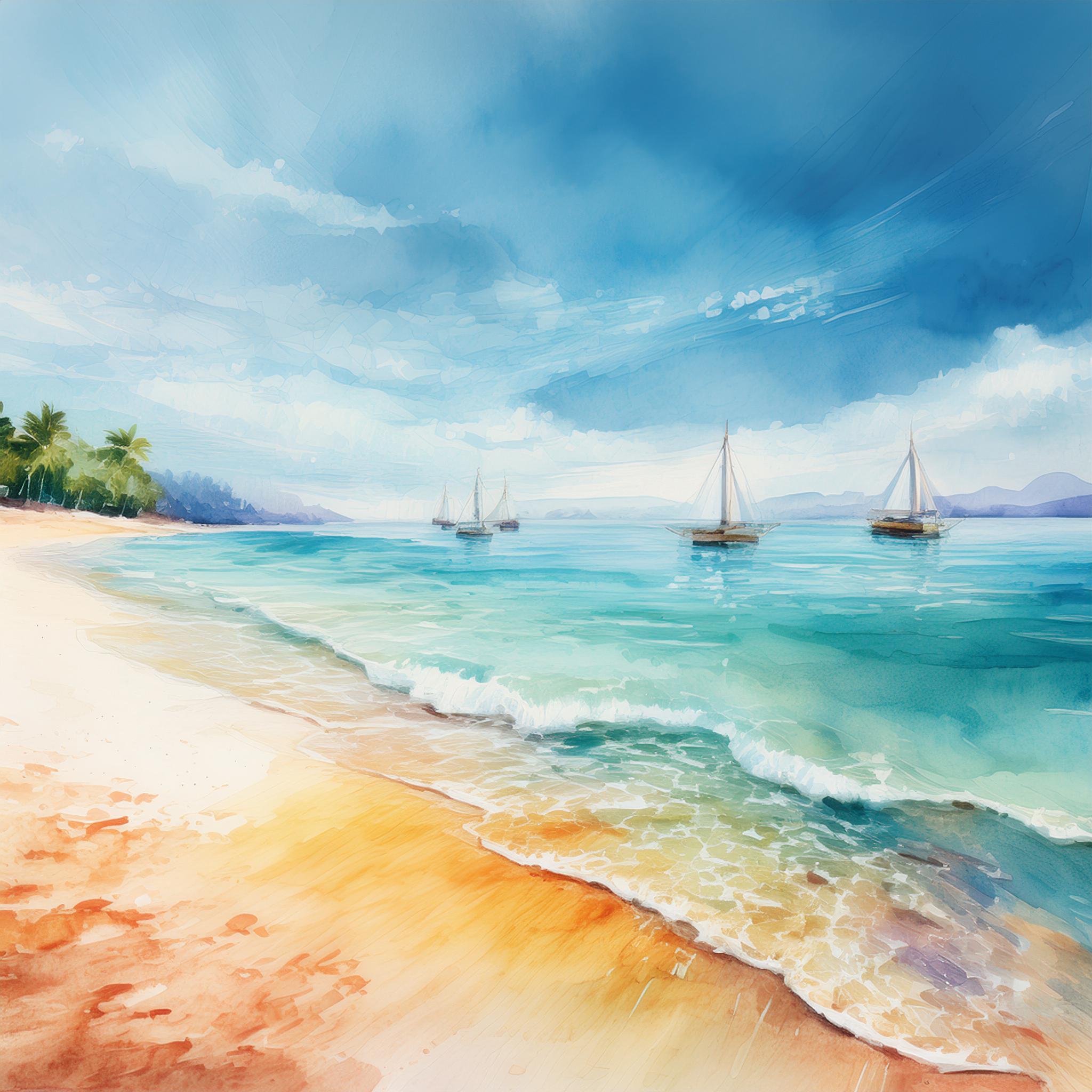 Lámina «Barcos y playa 4»