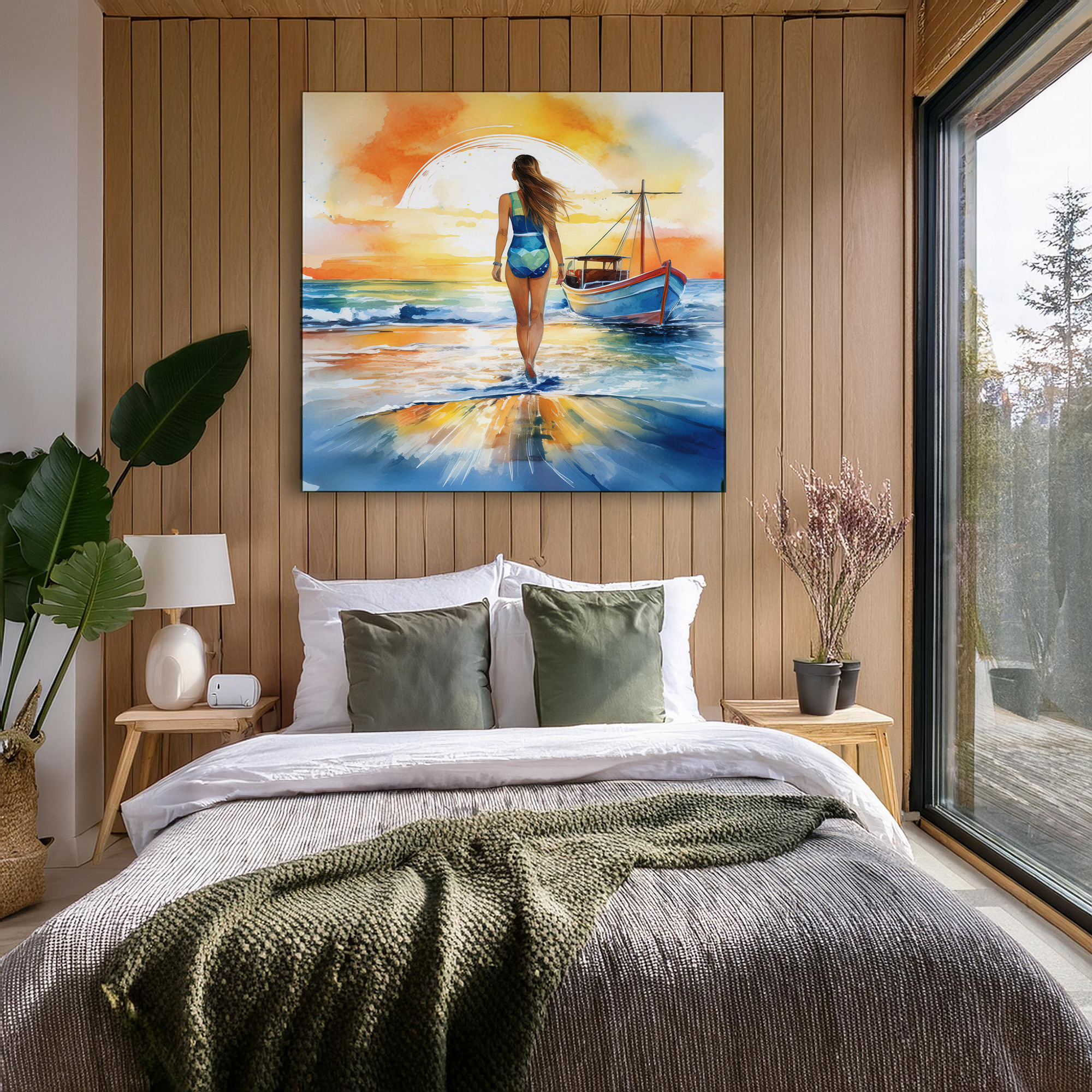 Lámina «Chica y barca en la playa 7”