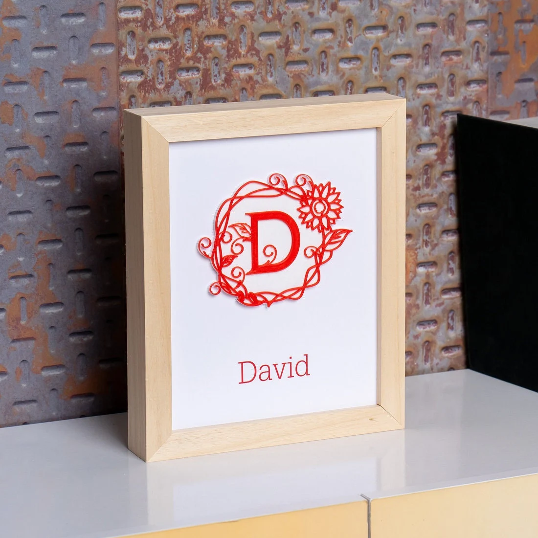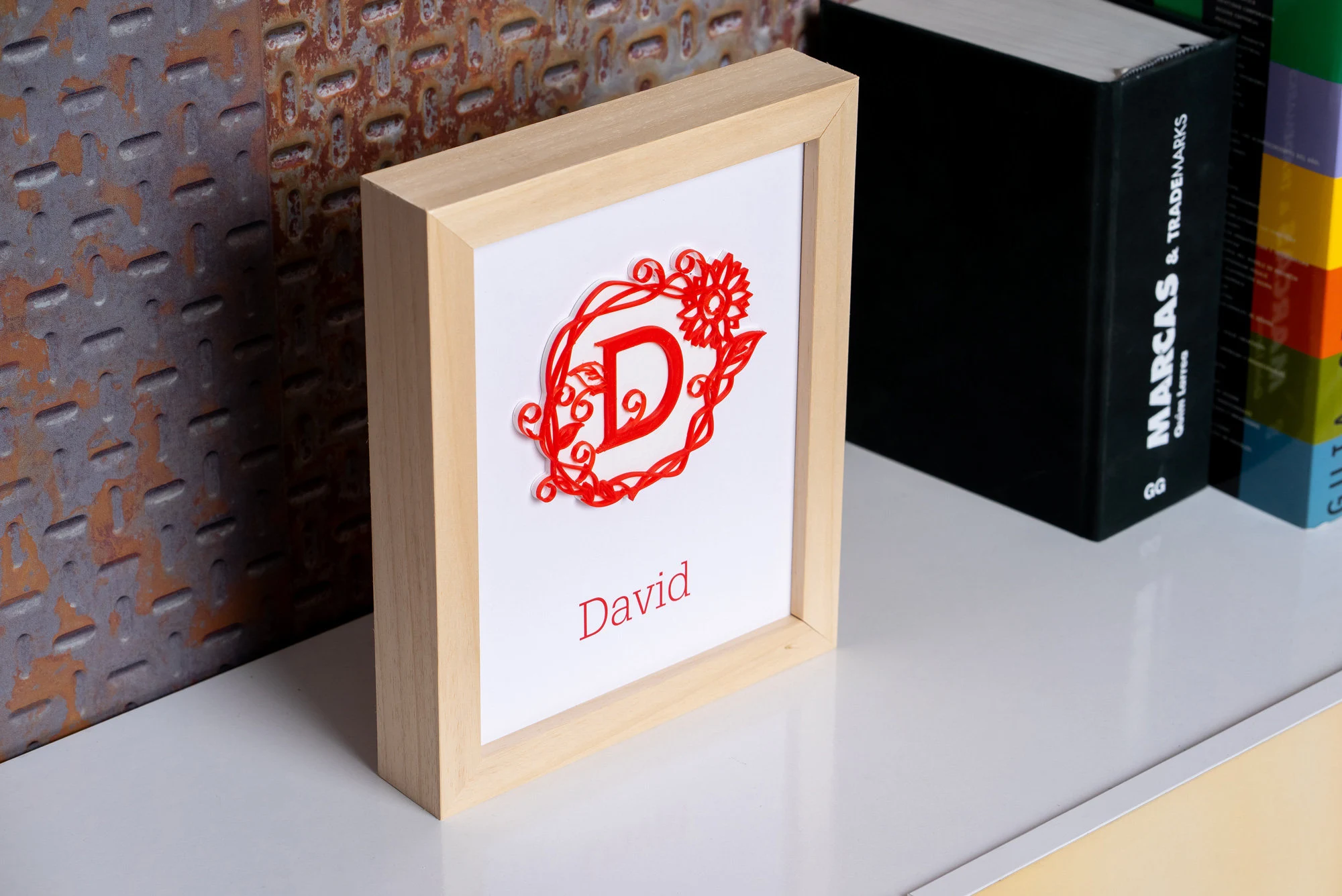 Cuadro con inicial y nombre estilo HOJAS
